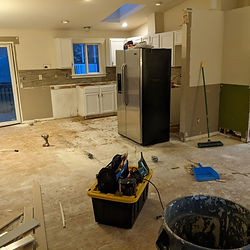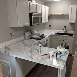 We can order, and set cabinets, countertops, backsplash, flooring, and trim to give your kitchen a complete makeover. Countertop types are limited to formica, laminate, epoxy, and butcher block. We cannot install new cabinets if we are not the ones doing the countertops. However, we can always do the demo, backsplash, and flooring.